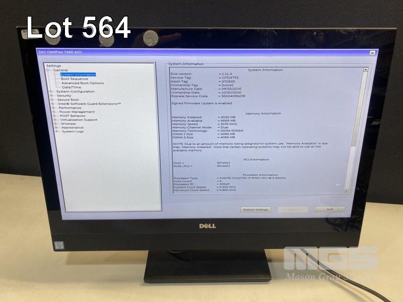 ALL-IN-ONE PC, DELL OPTIPLEX 7440, CORE i7 6700 (6TH GEN) @ 3.4GHz, 8GB DDR4 RAM, NO HDD, DVD-RW, INBUILT 23.8" FHD TOUCHSCREEN (1920x1080) (NO KEYBOARD, NO MOUSE) (NOTE: NOT DETECTING HARD DRIVE) S/N:GTD4TF2