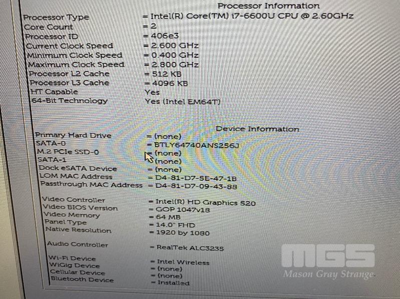LAPTOP, DELL LATITUDE E5470, CORE i7 6600U (6TH GEN) @ 2.6GHz, 16GB DDR4 RAM, 256GB M.2 SSD, 14" WIDESCREEN (1920x1080), INTEL HD GRAPHICS 520, Wi-Fi, BLUETOOTH, WINDOWS 10 HOME INSTALLED, DOCKING STATION & POWER SUPPLY S/N:J2KHRF2