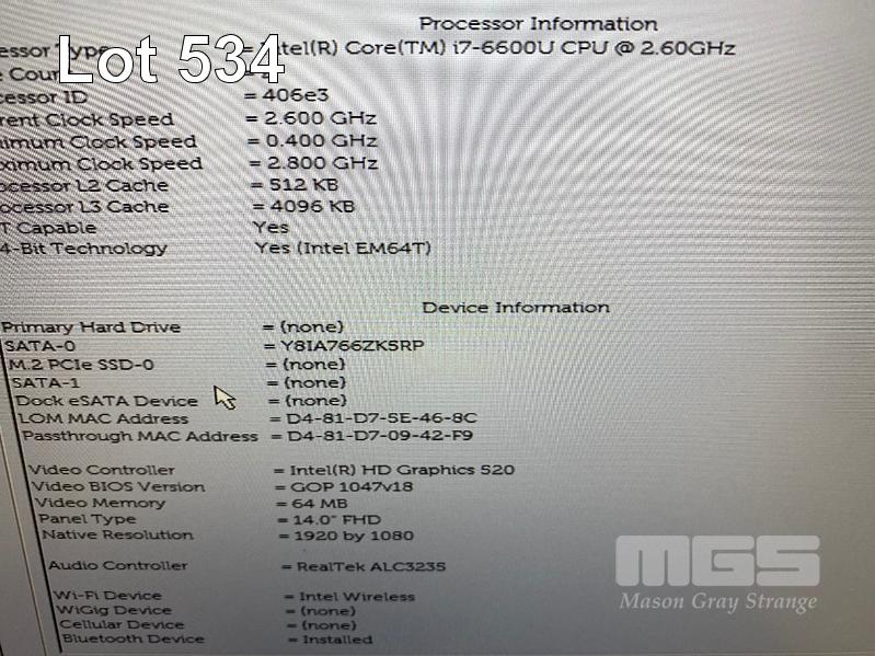 LAPTOP, DELL LATITUDE E5470, CORE i7 6600U (6TH GEN) @ 2.6GHz, 16GB DDR4 RAM, 256GB M.2 SSD, 14" WIDESCREEN (1920x1080), INTEL HD GRAPHICS 520, Wi-Fi, BLUETOOTH, WINDOWS 10 HOME INSTALLED, DOCKING STATION & POWER SUPPLY S/N:92KHRF2
