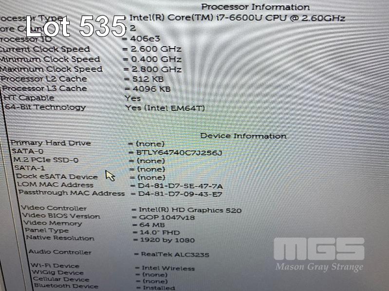 LAPTOP, DELL LATITUDE E5470, CORE i7 6600U (6TH GEN) @ 2.6GHz, 16GB DDR4 RAM, 256GB M.2 SSD, 14" WIDESCREEN (1920x1080), INTEL HD GRAPHICS 520, Wi-Fi, BLUETOOTH, WINDOWS 10 HOME INSTALLED, DOCKING STATION & POWER SUPPLY S/N:G5KHRF2