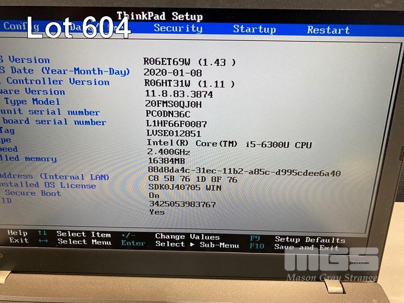 LAPTOP, LENOVO THINKPAD T460, TYPE 20FM, CORE i5 6300U (6TH GEN) @ 2.4GHz, 16GB DDR3 RAM, 256GB SSD, 14" WIDESCREEN (1920x1080), INTEL HD VIDEO, Wi-Fi, BLUETOOTH, WINDOWS 10 PRO INSTALLED & POWER SUPPLY (NOTE: MARKS ON SCREEN) S/N:PC0DN36C