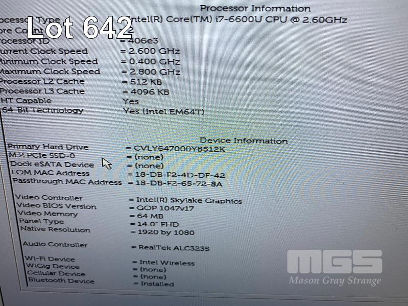 LAPTOP, DELL LATITUDE E7470, CORE i7 6600U (6TH GEN) @ 2.6GHz, 16GB DDR4 RAM, 512GB M.2 SSD, 14" WIDESCREEN (1920x1080), INTEL SKYLAKE GRAPHICS, Wi-Fi, BLUETOOTH, WINDOWS 10 HOME INSTALLED, DOCKING STATION & POWER SUPPLY (NOTE: NO BATTERY) S/N:HG9ZTC2