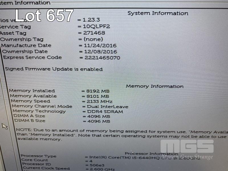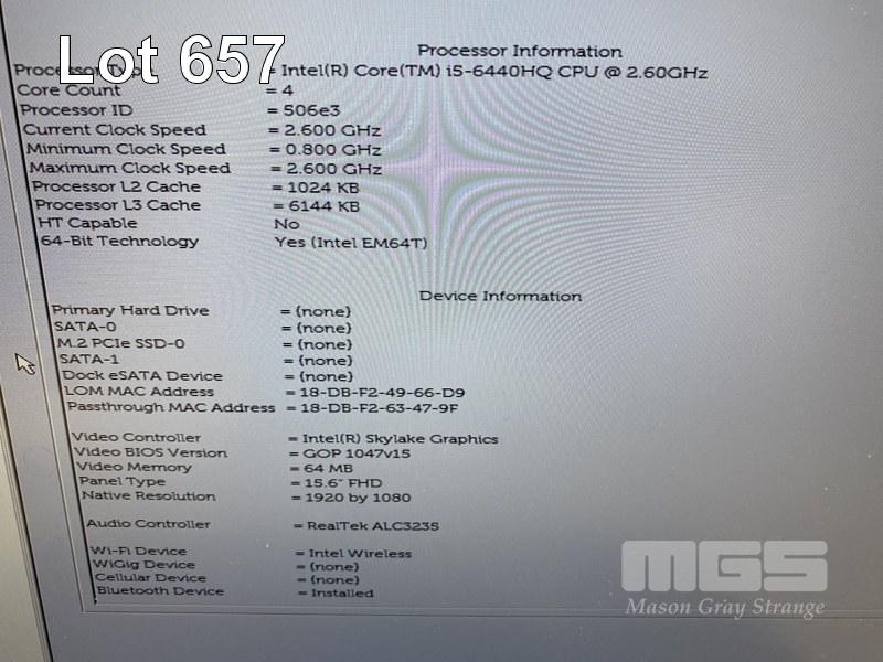 LAPTOP, DELL LATITUDE E5570, CORE i5 6440HQ (6TH GEN) @ 2.6GHz, 8GB DDR4 RAM, NO HDD, 15.6" WIDESCREEN & POWER SUPPLY (NOTE: DAMAGE TO CASING) S/N:10QLPF2