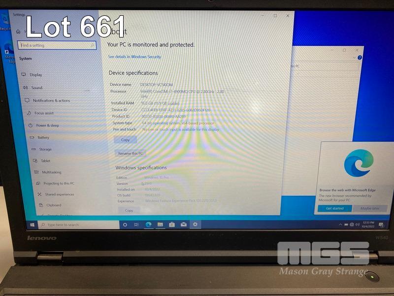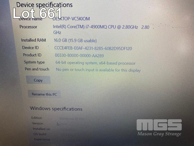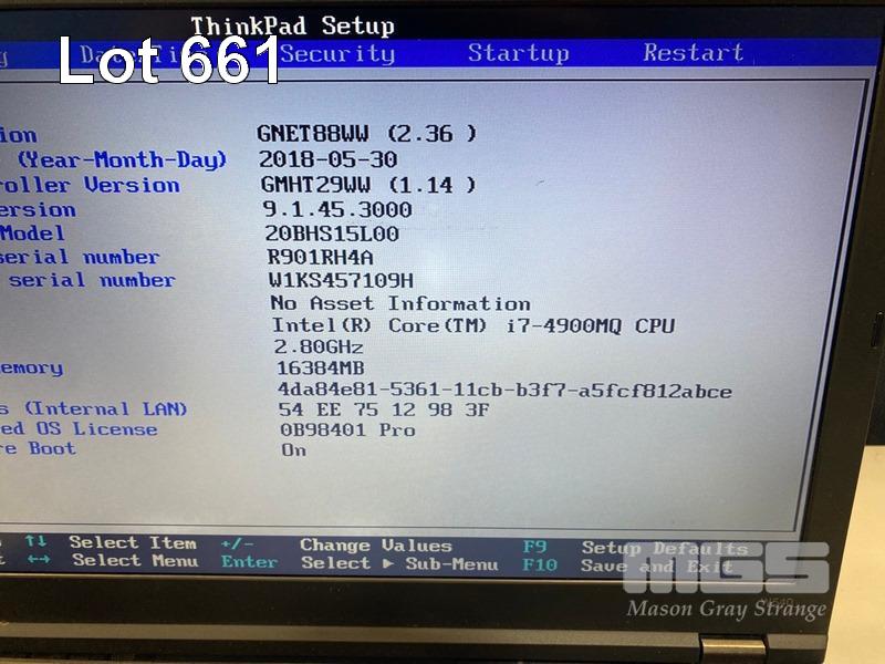 LAPTOP, LENOVO THINKPAD W540, TYPE 20BH, CORE i7 4900MQ (4TH GEN) @ 2.8GHz, 16GB DDR3 RAM, 275GB SSD, 15.6" WIDESCREEN (1920x1080), INTEL HD VIDEO, 2GB NVIDIA QUADRO K1100M VIDEO, Wi-Fi, BLUETOOTH, WINDOWS 10 PRO INSTALLED & POWER SUPPLY (NOTE: DAMAGE TO CASING, WHITE SPOT SCREEN BLEMISHES) S/N:R901RH4A