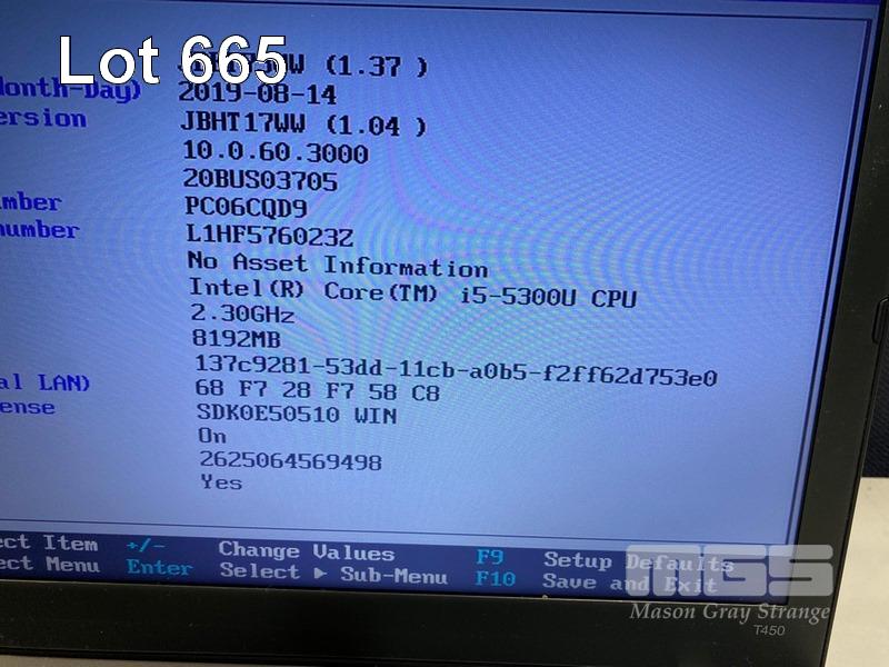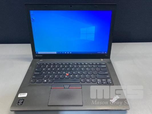LAPTOP, LENOVO THINKPAD T450, TYPE 20BU, CORE i5 5300U (5TH GEN) @ 2.3GHz, 8GB DDR3 RAM, 250GB SSD, 14" WIDESCREEN (1366x768), INTEL HD VIDEO, Wi-Fi, BLUETOOTH, WINDOWS 10 PRO INSTALLED, DOCKING STATION & POWER SUPPLY (NOTE: DAMAGED POWER CONNECTION ON LAPTOP, MARKS ON SCREEN, NO BATTERY) S/N:PC06CQD9