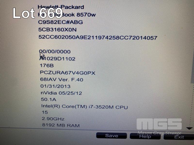 LAPTOP, HP ELITEBOOK 8570w, CORE i7 3520M (3RD GEN) @ 2.9GHz, 8GB DDR3 RAM, 500GB SATA HDD, DVD-RW, 15.6" WIDESCREEN (1920x1080), 2GB NVIDIA QUADRO K1000M VIDEO, Wi-Fi, BLUETOOTH, WINDOWS 7 PRO INSTALLED & POWER SUPPLY (NOTE: NO BATTERY) S/N:5CB3160X0N