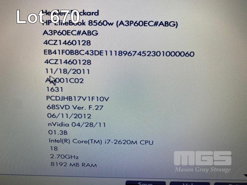 LAPTOP, HP ELITEBOOK 8560w, CORE i7 2620M (2ND GEN) @ 2.7GHz, 8GB DDR3 RAM, 320GB SATA HDD, DVD-RW, 15.6" WIDESCREEN (1920x1080), 2GB NVIDIA QUADRO 1000M VIDEO, Wi-Fi, BLUETOOTH, WINDOWS 7 PRO INSTALLED & POWER SUPPLY (NOTE: BATTERY NOT CHARGING) S/N:4CZ1460128