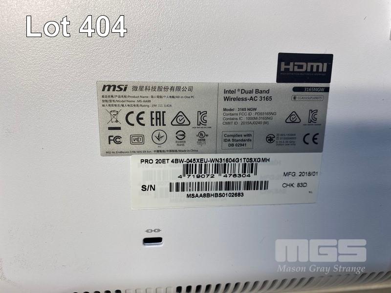 ALL-IN-ONE PC, MSI MS-AA8B (PRO-20ET), CELERON N3160 @ 1.6GHz, 4GB DDR3 RAM, 1TB SATA HDD, DVD-RW, INBUILT 19.5" WIDESCREEN & POWER SUPPLY (NO KEYBOARD, NO MOUSE) S/N:MSAA8BHBS0102683