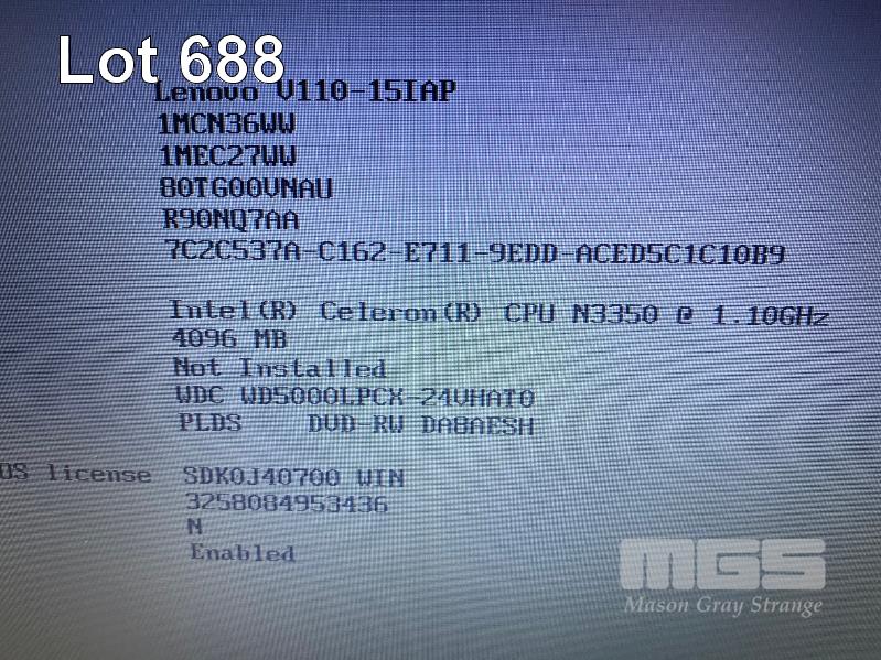 LAPTOP, LENOVO IDEAPAD V110-15IAP, CELERON N3350 @ 1.1GHz, 4GB RAM, 500GB SATA HDD, DVD-RW, 15.6" WIDESCREEN (1366x768), WINDOWS 10 HOME INSTALLED (NO POWER SUPPLY) S/N:R90NQ7AA