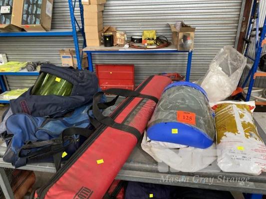 CATU HIGH VOLTAGE PROTECTIVE EQUIPMENT INC RUBBER SAFETY MAT IN CARRY BAG, ARC FLASH PROTECTIVE HOOD & FACE SHIELD, 44.8 CAL/cm3, CLASS 3 GLOVES & HARD HATS & FACE SHIELDS WITH CARRY BAG