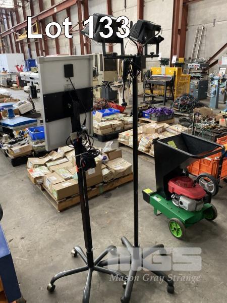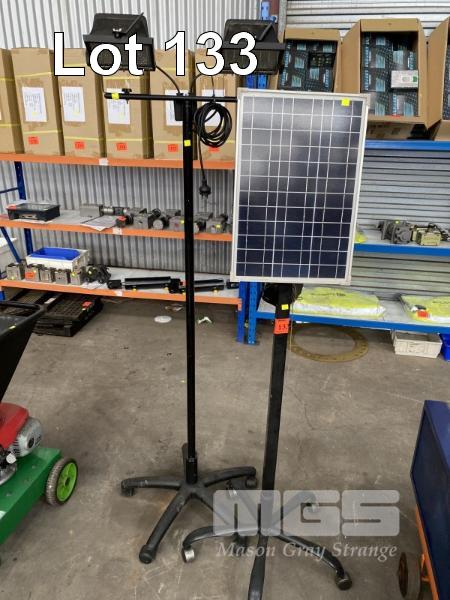 SOLAR PANELS & TWIN HALOGEN LIGHT ON STANDS WITH WATER PUMP, 12V
