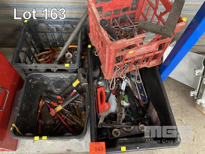 4 x TUBS ASSORTED HAND TOOLS, INC HAMMERS, PLIERS, SCREWDRIVERS, CUTTERS, SPIRIT LEVELS, PUNCHES, ETC