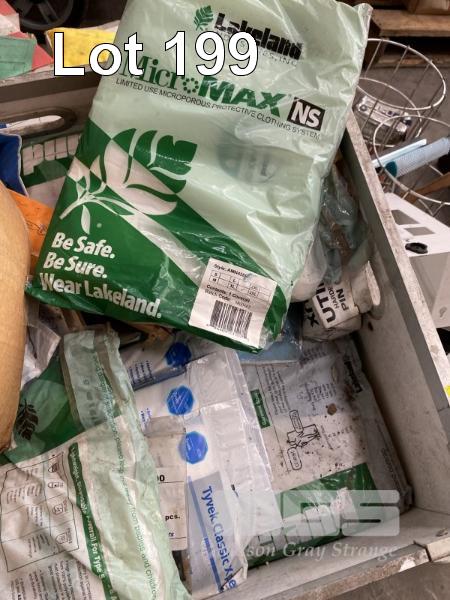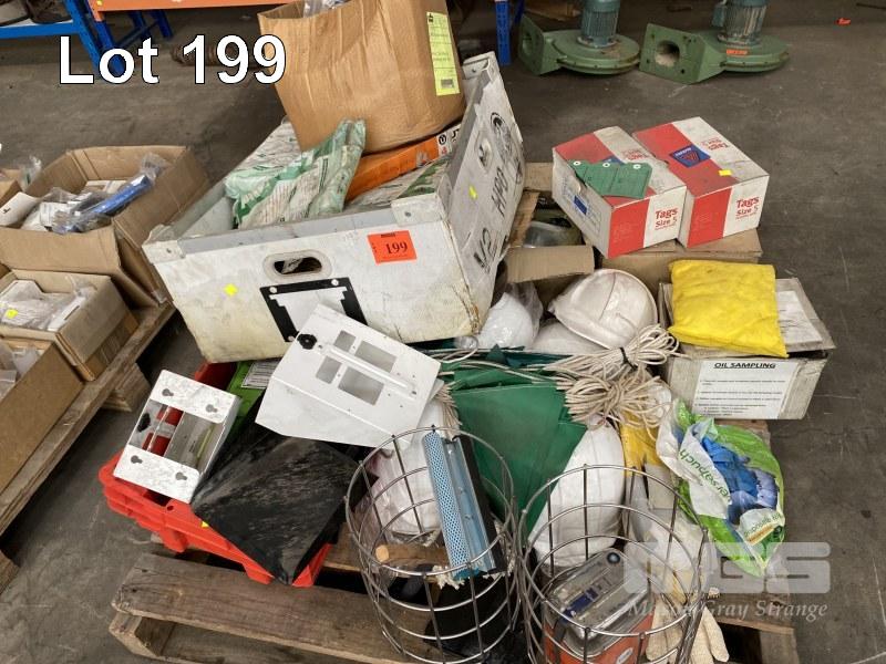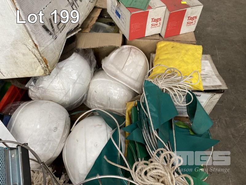 HARD HATS, DISPOSABLE OVERALLS, WELDING GUARDS, OIL SAMPLE KITS, TAGS, ETC,