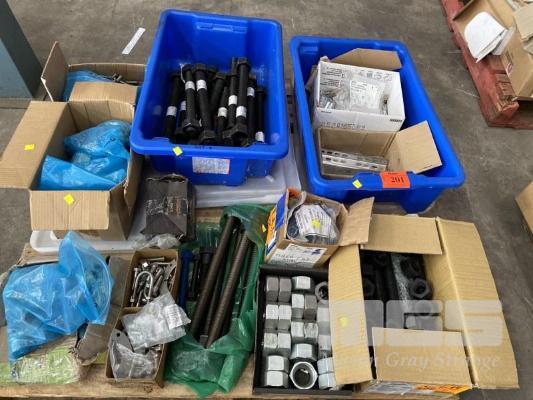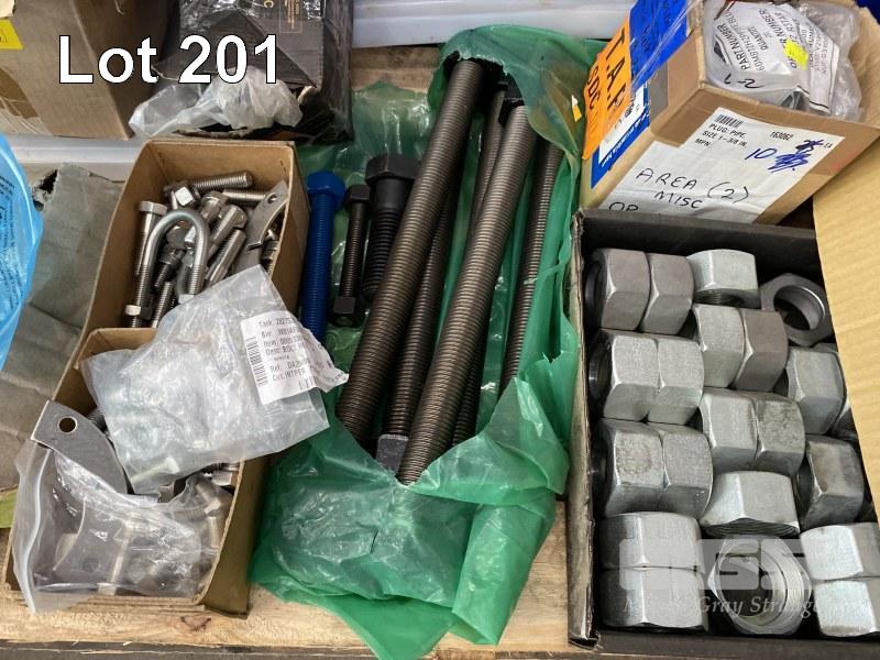 ASSORTED NUTS & BOLTS, STAINLESS STEEL & BLACK STEEL, THREADED ROD, BRACKETS, CLAMPS, ETC