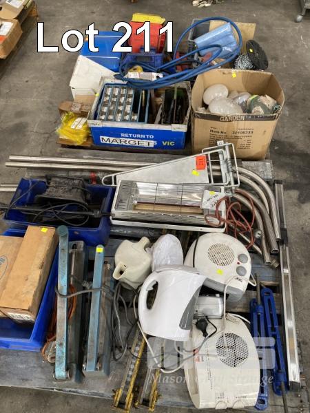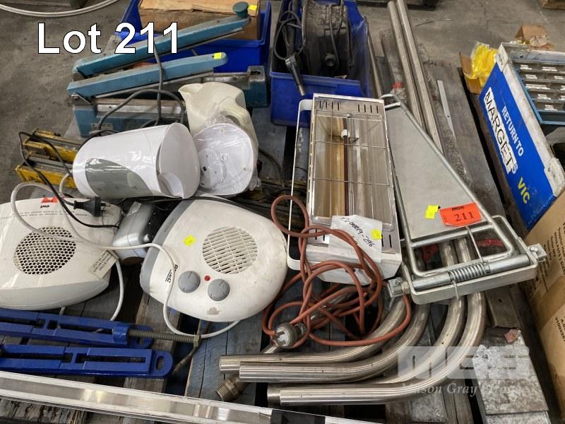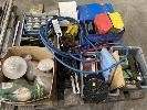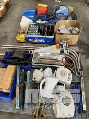 3 x PAINT/MORTAR MIXERS, PUNCHES, CHAIN, WEDGES, SLEDGE HAMMER HEAD, PARTS DRAWERS, SEALERS, CAMP OVEN, HEATERS, ETC