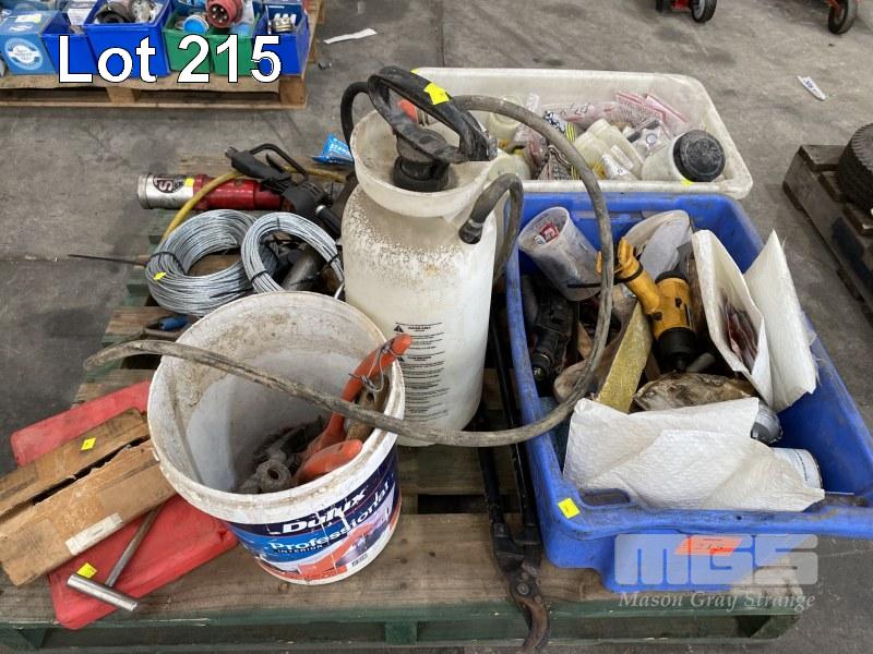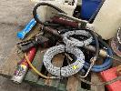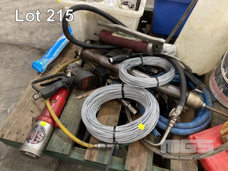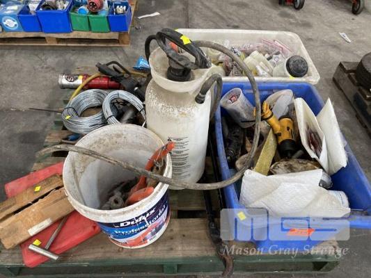 ASSORTED DRUM PUMPS, WIRE ROPE, HAND TOOLS, SPRAY UNIT, LASER MARKING CHEMICALS