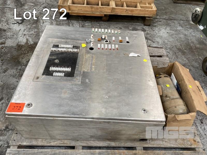 STAINLESS STEEL CONTROL CABINET, 750 x 750 x 300mm & STARTER MOTOR, USED