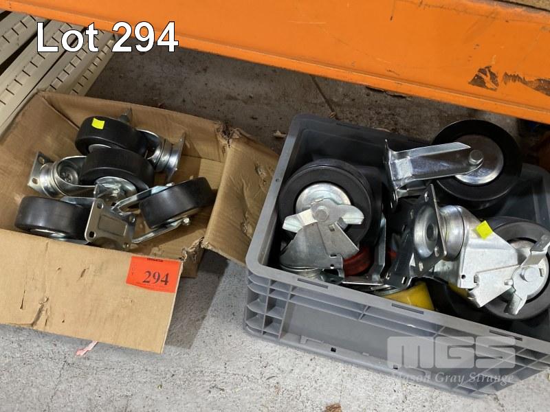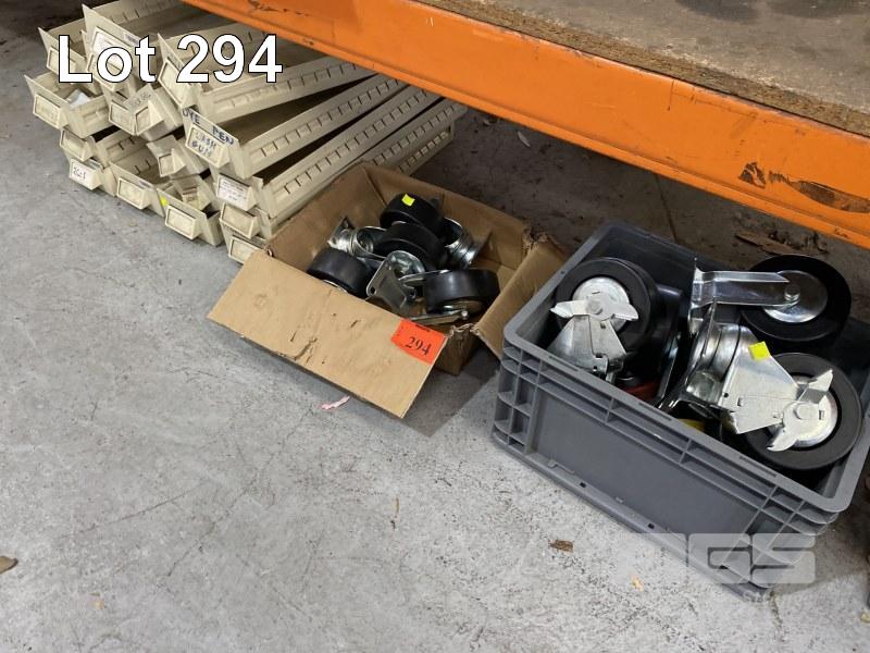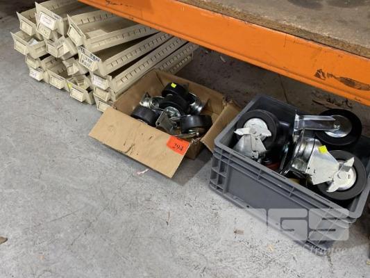 ASSORTED CASTOR WHEELS & PARTS DRAWERS, 2 x TUBS