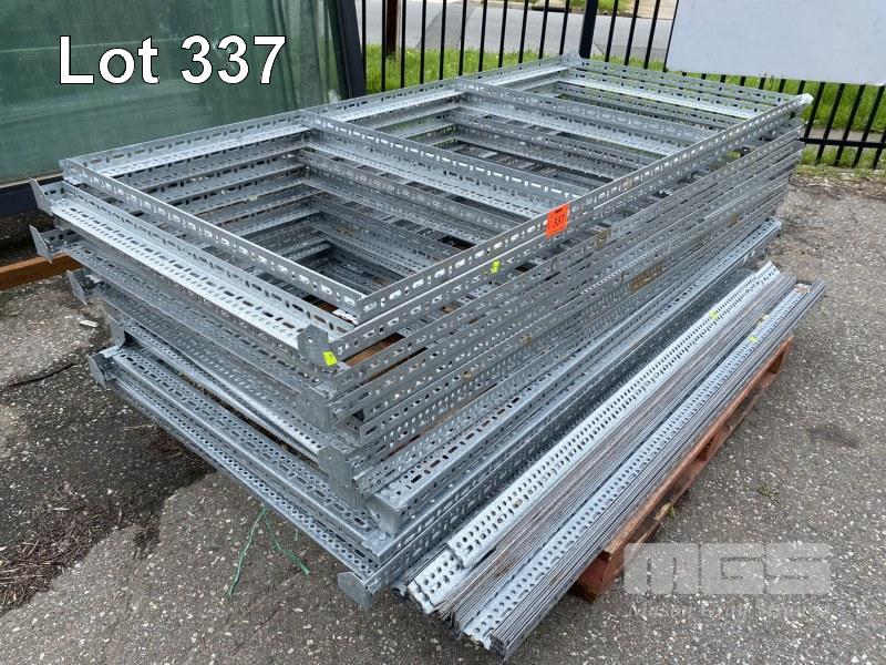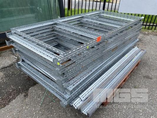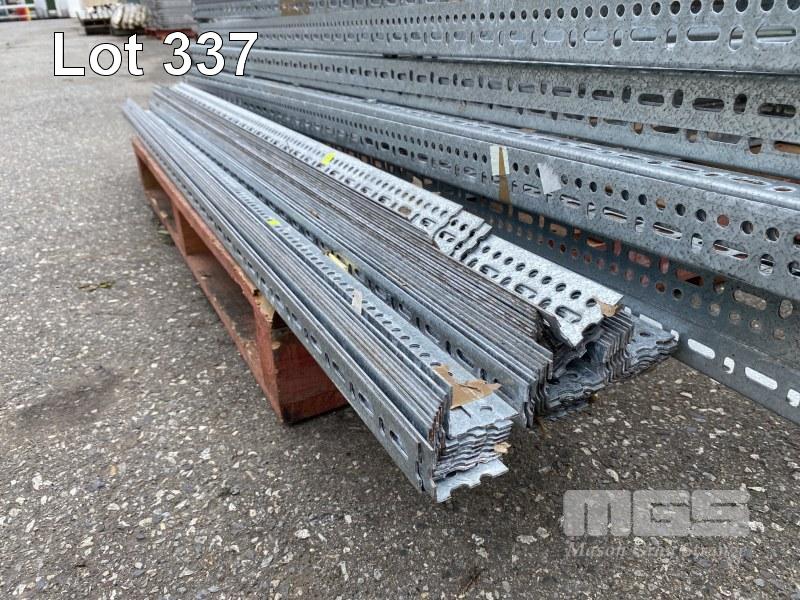 128 X GALVANISED 55 x 41 MM SLOTTED ANGLE RAIL SECTIONS COMPRISING SHELVING END ASSEMBLIES & SINGLE RAIL SECTIONS. IN TOTO 28 @ 200 CM RAILS 56 @ 90 CM RAILS 38 @ 180 CM RAILS 4 @ 150 CM RAILS NUTS & BOLTS WHERE ASSEMBLED. 28 X DEXION VERTICAL STRUT PLATES ON END SECTIONS.