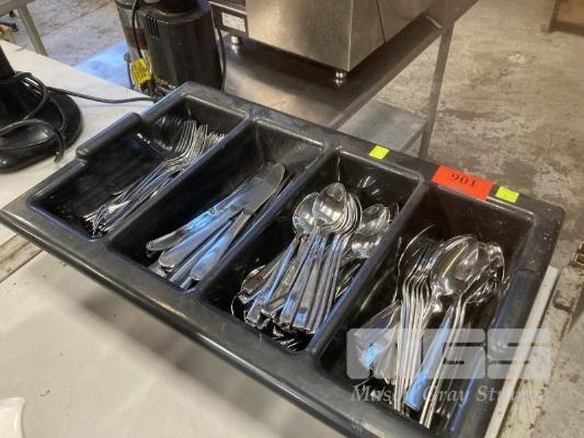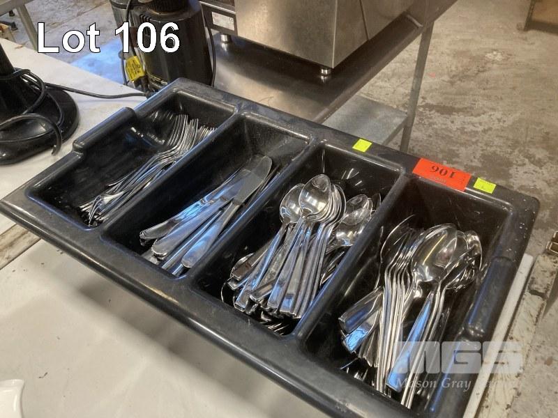 QUANTITY KNIVES, FORKS SPOONS & TRAY