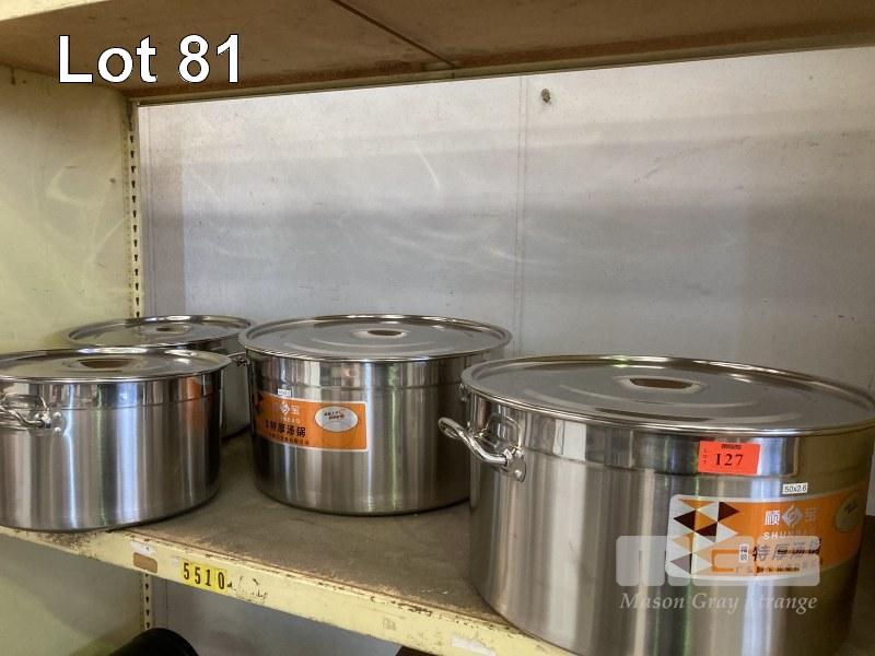 4 x STAINLESS STEEL STOCK POTS, 40 & 50cm