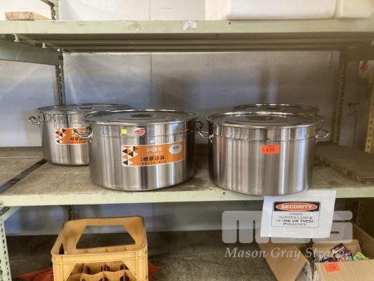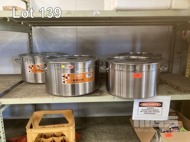 4 x STAINLESS STEEL STOCK POTS, 45 & 50cm