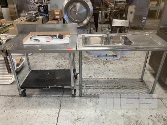 MOBILE STAINLESS STEEL TOP BENCH 100 X 70CM & TWIN BOWL SINK 125 X 60CM