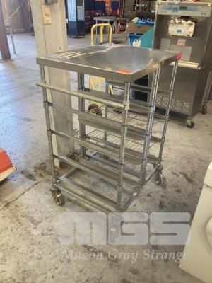 STAINLESS STEEL TROLLEY, 77 x 62cm WITH TRAY RACK