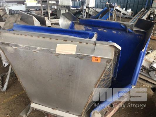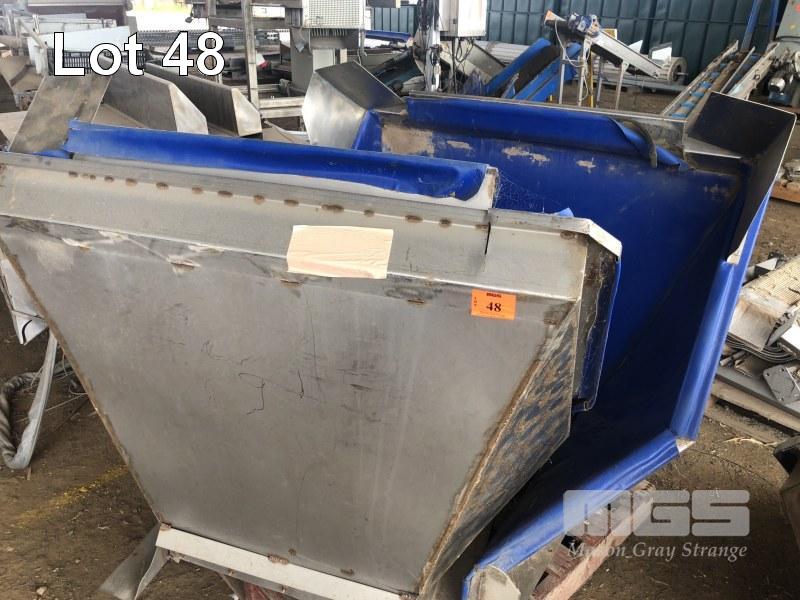 4 x STAINLESS STEEL PRODUCT CHUTES, NON MAGNETIC STAINLESS STEEL, APPROX 1200 x 1200mm