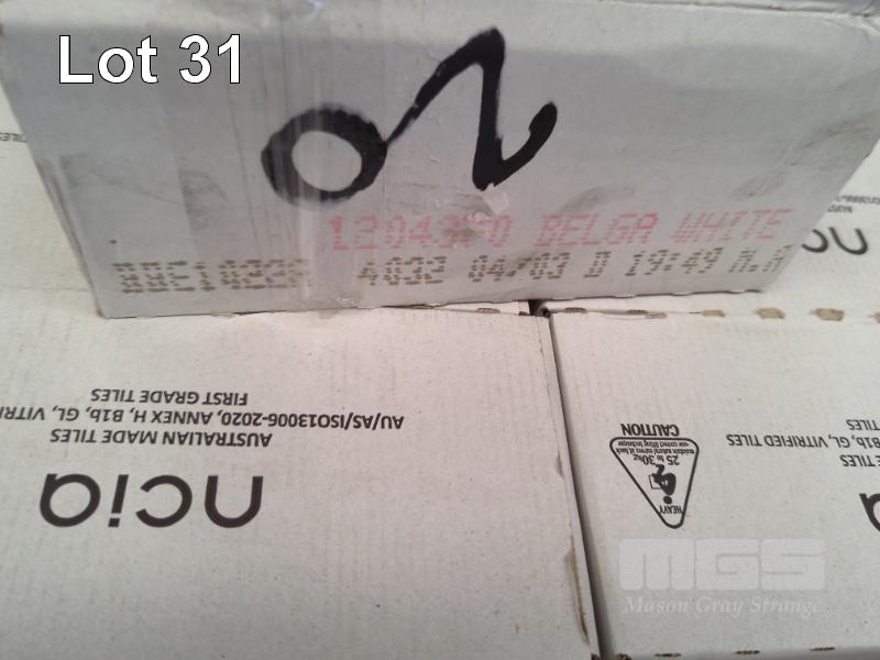 FLOOR TILES "NCIA BELGA" 300 X 300 MM WHITE MATT - 27 X BOXES OF 22 TILES EACH, 53 M2 APPROX. (1 X PALLET)