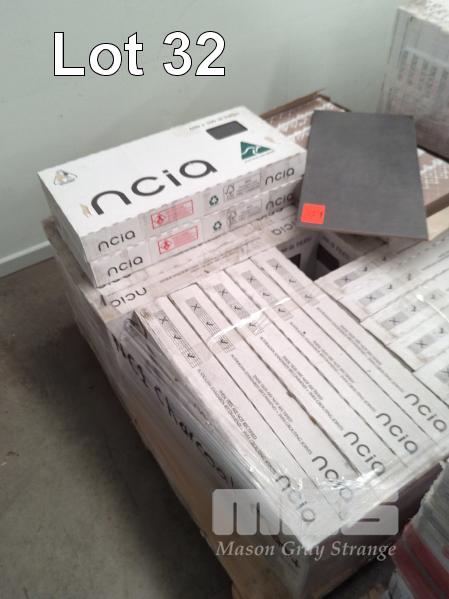 FLOOR TILES "NCIA BELGA" 600 X 300 MM CHARCOAL MATT - 26 X BOXES OF 8 TILES EACH, 37 M2 APPROX. (1 X PALLET)