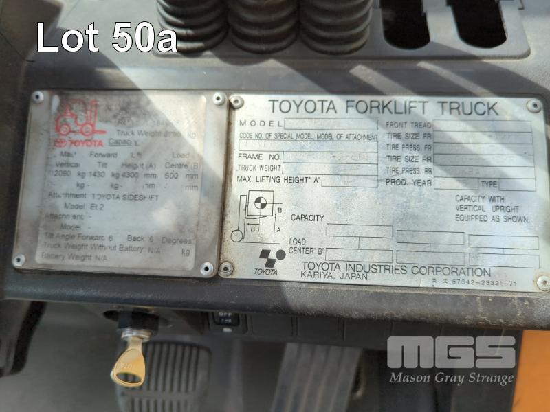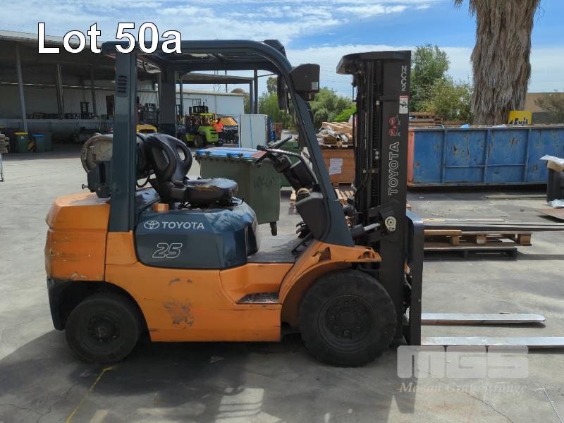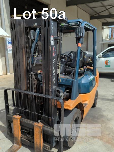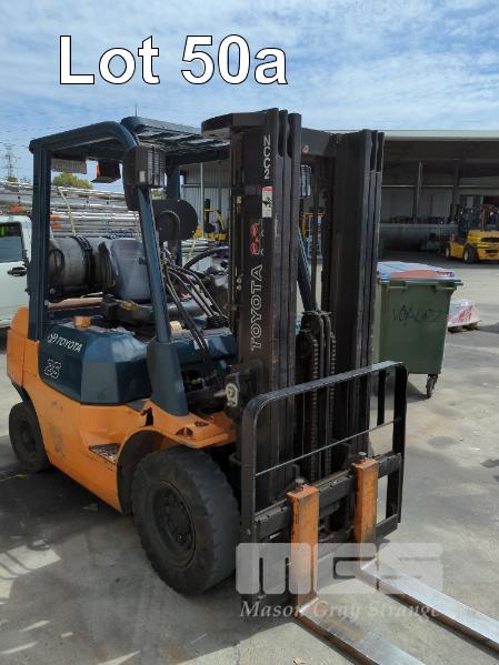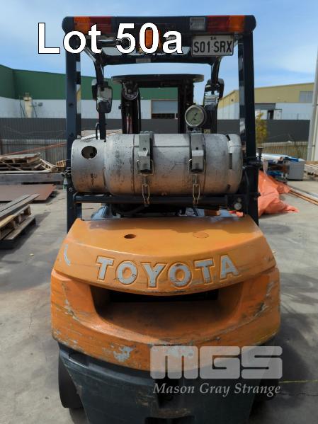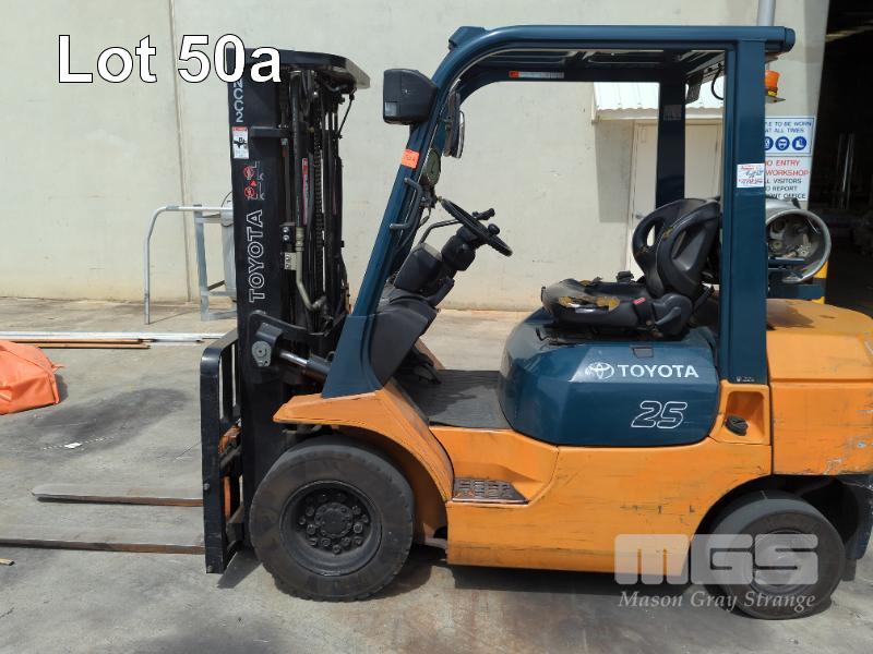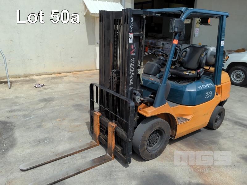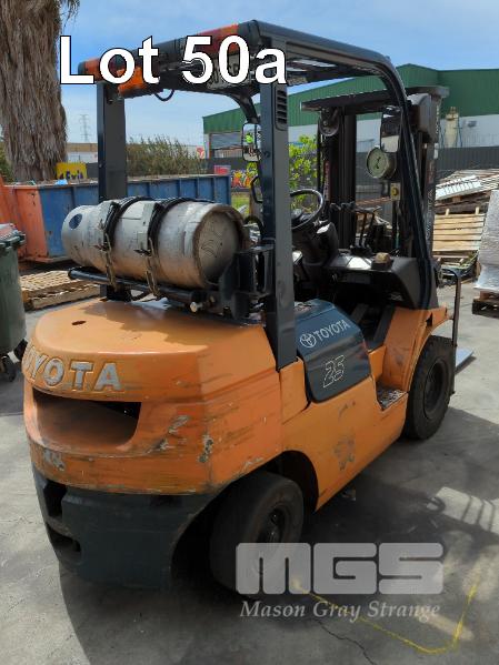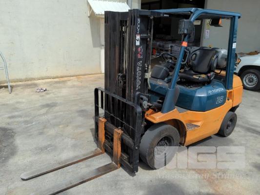 TOYOTA 2.5 TONNE FORKLIFT, REGO: S01SRX, MODEL:42-7FG25, CHASSIS: 407FG25-25813, 3 STAGE CONTAINER MAST, SIDE SHIFT, LPG, WEIGH SCALE-2.5T, 6,879hrs, SOLID TYRES, HAZARD & DRIVING LIGHTS, WITH MIRRORS