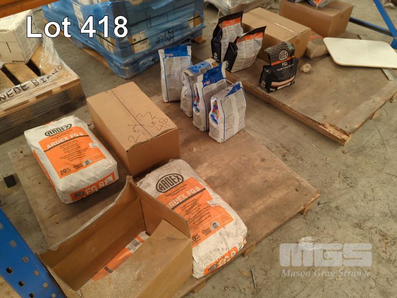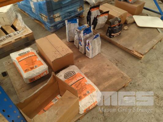 CONTENTS OF 3 PALLETS, ASSORTED COLOURED GROUTS, 20 x 5kg, 5 x 20kg BAGS