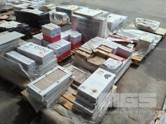 9 X PALLETS OF ASSORTED FLOOR & WALL TILES FROM NICA, RAK CERAMICS, RAGNO, VINCIGRES ETC. VARIOUS SIZES INCLUDING 600 X 600 MM TILES FROM RAK CERAMICS IN ASH MATT, ASH LAPPATO & ASH NATURAL & MANY MORE. 60 BOXES PLUS.