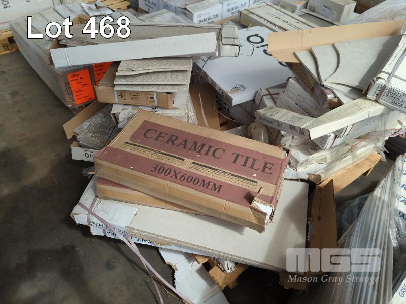 BAY LOT OF ASSORTED TILES, 2 X ROWS COMPRISING 15 X PALLETS. LARGE QUANTITY OF QUALITY FLOOR AND WALL TILES.