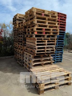 2 X BAYS OF UN-BRANDED WOODEN SHIPPING PALLETS. 100 PLUS. (YARD NORTH & YARD SOUTH).