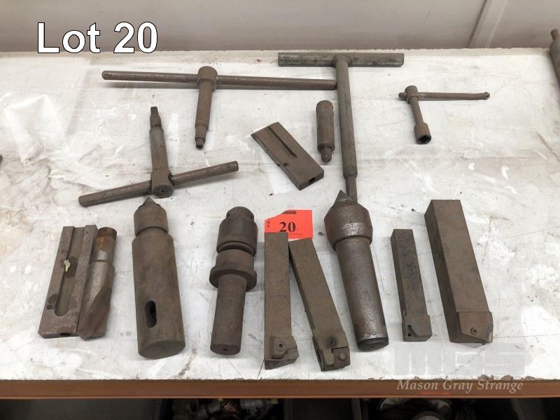 ASSORTED LATHE ACCESSORIES, LATHE TOOLS, LIVE CENTRES, DRILL CHUCKS & CHUCK KEYS