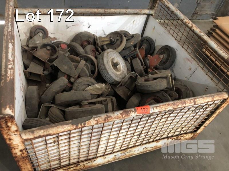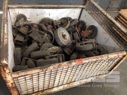 STILAGE OF ASSORTED FIXED & SWIVEL CASTOR WHEELS, APPROX 50, (STILLAGE INCLUDED)