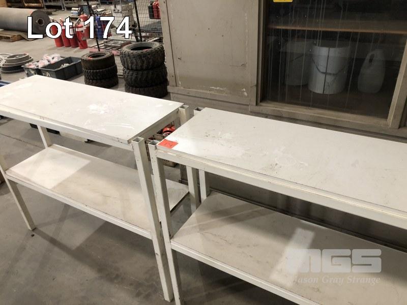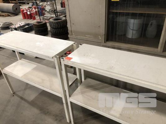 2 x 2 TIER SHELF UNITS, STEEL FRAME, PARTICLEBOARD SHELVES, 1160 x 400 x 1100mm