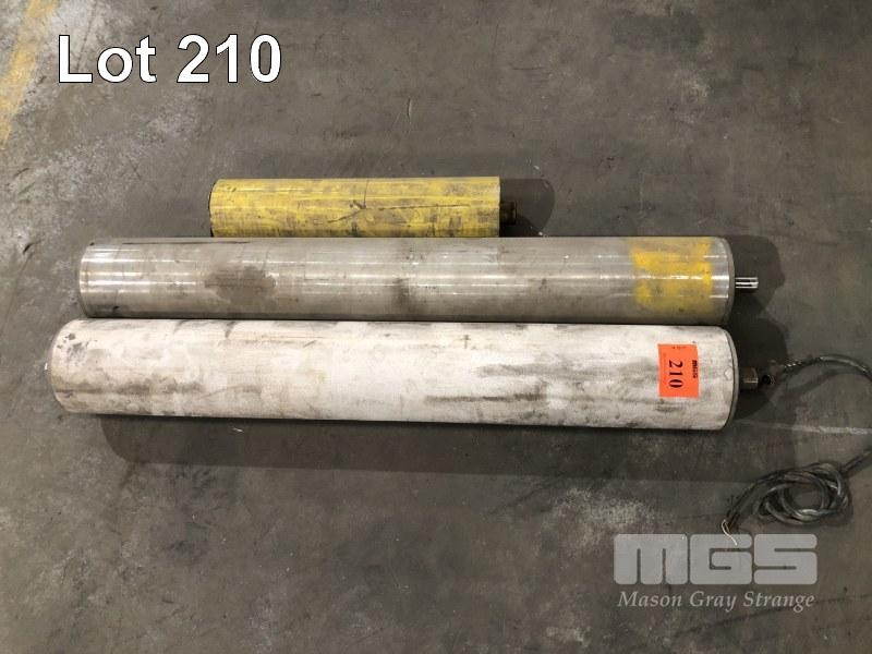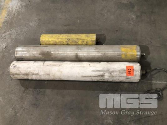 3 x STAINLESS STEEL CONVEYOR ROLLERS, 2 - 960 x 140mm, (1 - POWERED), 1- 460 x 110mm (POWERED)