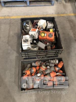 2 x TUBS 415v SWITCHES, PLUG BASES, PLUGS, SPEED CONTROLLER, RELAYS, ELECTRICAL COMPONENTS, ETC.