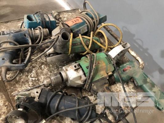 3 x 240v POWER TOOLS, 2 x IMPACT DRILLS, 1 x 115mm ANGLE GRINDER PLUS HEAT GUN & ACCESSORIES