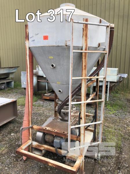 PRODUCT HOPPER, GALV, WITH FEED MOTOR 415v ON FRAME, WITH FORK POCKETS