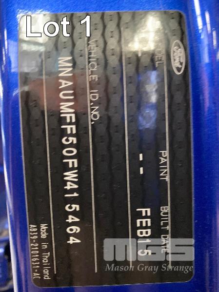2015 FORD PX RANGER XLT CREWCAB UTILITY 4X4 REG: AEH181 (VIC) (EXPIRED) VIN: MNAUMFF50FW415464 ENG: P5AT2015708 ODO: 211,081 3.2 LTR TURBO DIESEL, 6 SPEED AUTO, AURORA BLUE, 4 DOORS, 5 SEAT, 4X4 ABS, AIR BAG, AIR CON, ALLOY WHEELS, BLUETOOTH, CD PLAYER, CENTRAL LOCKING, CRUISE CONTROL, FOG LAMPS, IMMOBILISER, POWER STEERING, POWER WINDOWS, SIDE STEP, SPARE WHEEL, TOW BAR (NO PAPERS, WITH 1 KEY/S, WITH OWNER'S MANUAL, WITH SERVICE BOOKS) CONDITION: ENGINE - OIL LEAK ***KEY 1 *** -