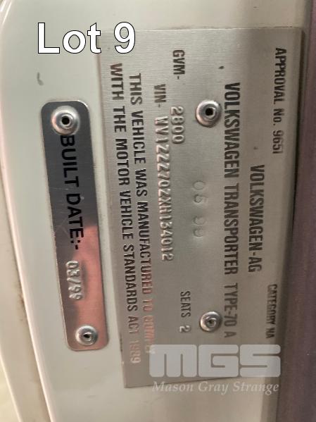 1999 VOLKSWAGEN TRANSPORTER TYPE-70-A VAN REG: WGJ 932 (SA) VIN: WV122270ZXH134012 ODO: 347,747kms SHOWING 2.0 LITRE, 5 SPEED MANUAL TRANSMISSION, PETROL, WHITE DUCO, 2 DOORS, 2 SEAT, AIR BAG, AIR CON, CARGO BARRIER, CD PLAYER, SHELVING, SPARE WHEEL, TOW BAR, KEY #13 (WITH 1 KEY/S, WITH OWNER'S MANUAL, WITH SERVICE BOOKS)