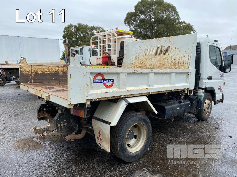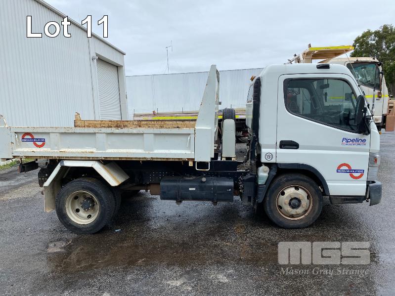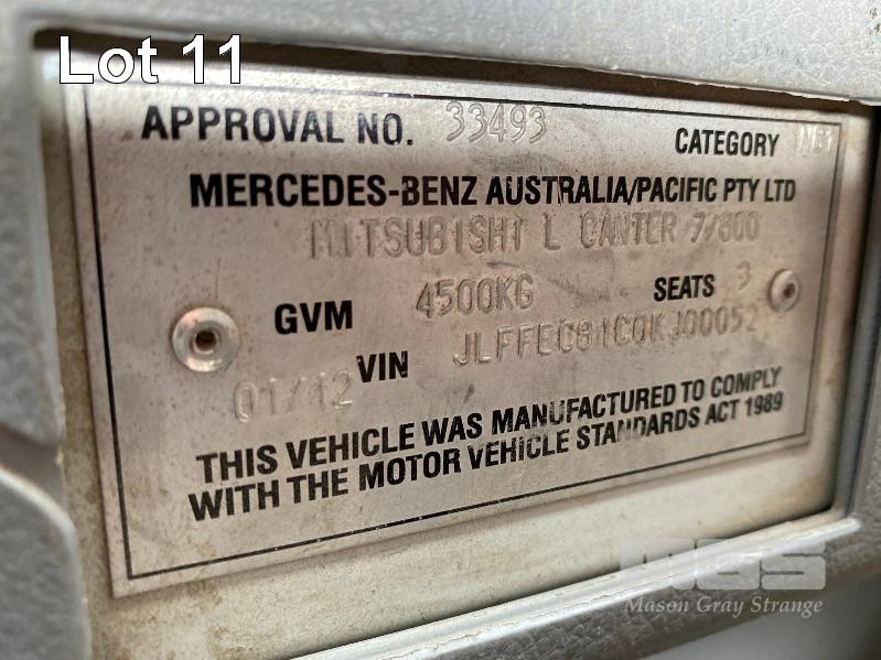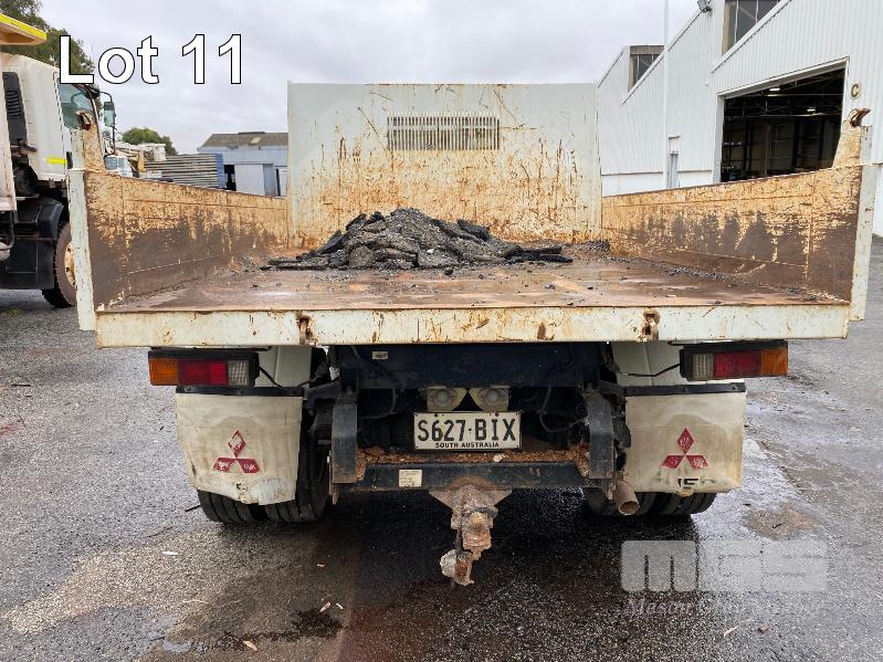 01/2012 (CP) MITSUBISHI FUSO CANTER L 7/800 TIPPER TRUCK REG: S627 BIX VIN: JLFFEC81C0KJ00052 ODO: 69,280kms SHOWING GVM: 4,500kg 715 TURBO DIESEL, ENG MOD: 4P10-7AT4, AUTO, SPRING SUSPENSION, WHITE DUCO, 2 DOORS, 3 SEAT, AIR CON, HYDRAULICS, TIPPER HOIST CONTROLS, 2 WAY RADIO KEY #32 (WITH 1 KEY/S, WITH OWNER'S MANUAL) CONDITION: TRANSMISSION - ALL FAULTS, WON'T GO INTO GEAR