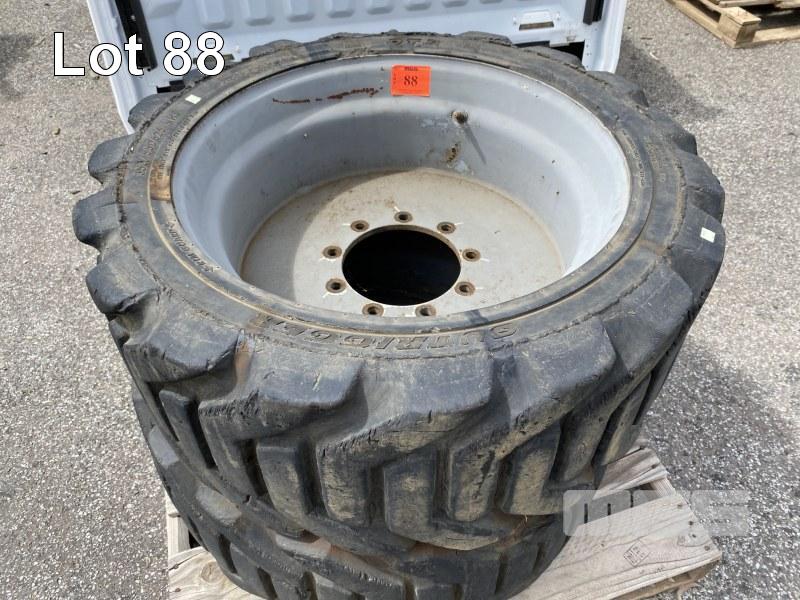 2 x RIMS & TYRES, 9SND STEEL RIMS WITH OTR OUTRIGGER 355/55D625 NAS TYRES