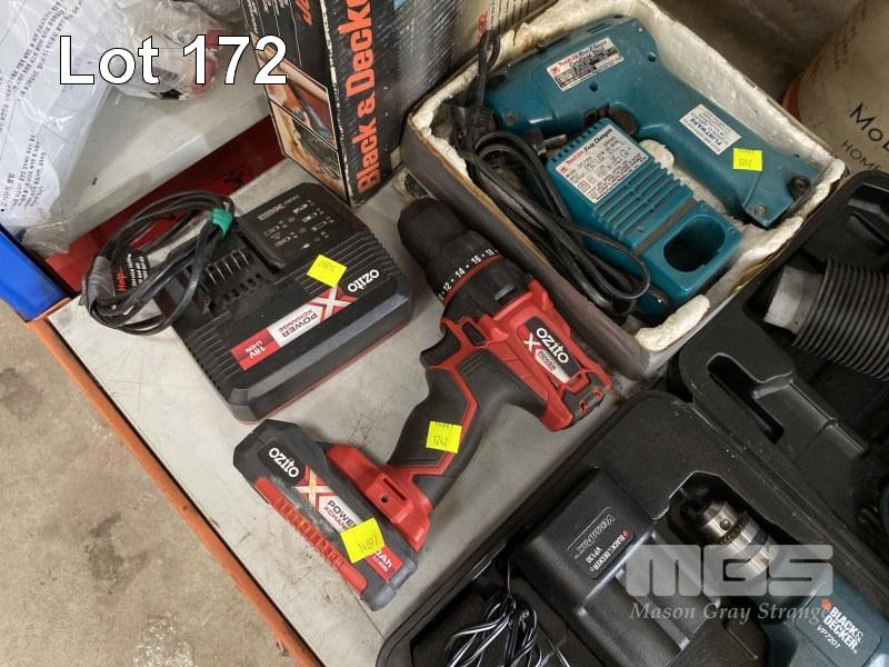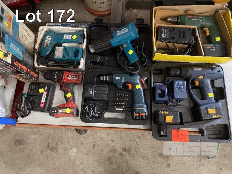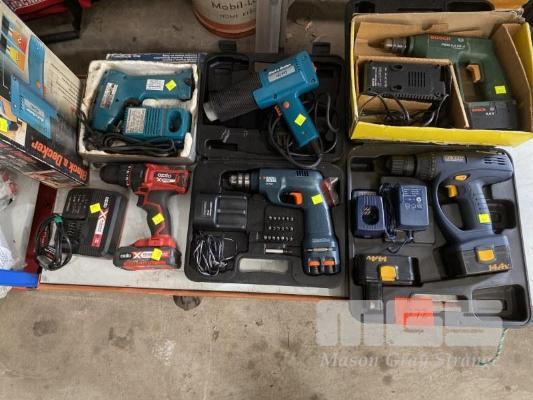 5 x CORDLESS DRILLS & DRIVERS INC OZITO X POWER, B&D VERSA PAK, B&D HEAT GUN, GMC, BOSCH, ETC
