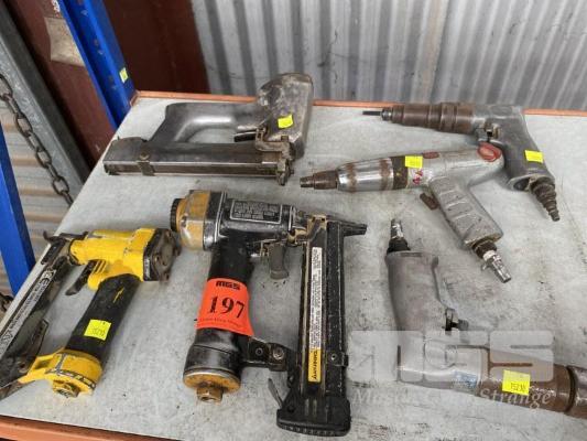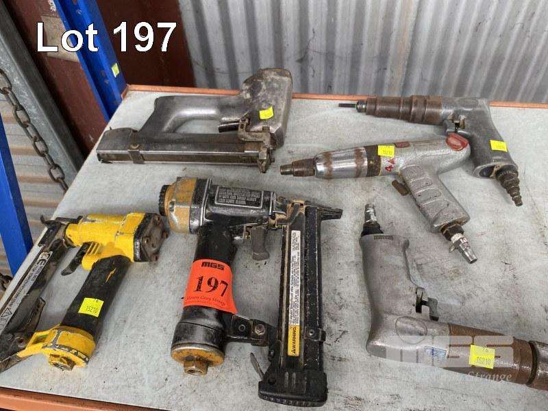 3 x PNEUMATIC DRILLS/DRIVERS & 3 x PNEUMATIC BRAD GUNS, SHIMANO, STANLEY, ETC