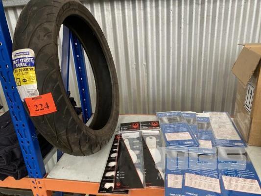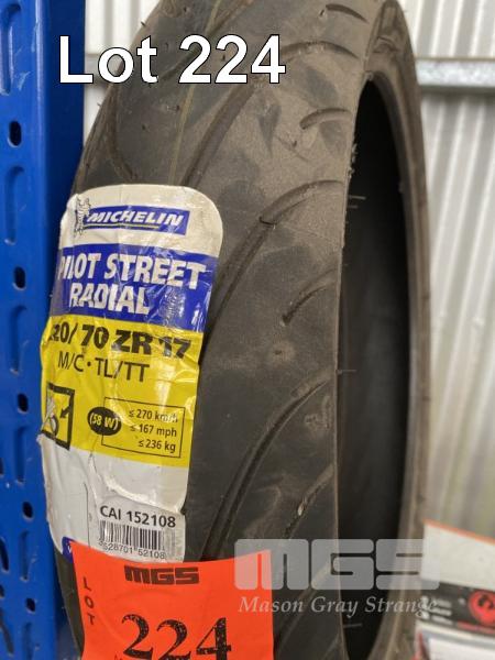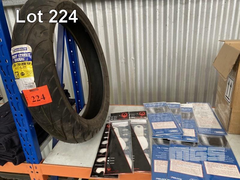 ROAD BIKE TYRE, MICHELIN PILOT STREET RADIAL, 120x70ZR17 WITH SHOES & DRAGON TEAR OFF VISOR & GOGGLE LENS PROTECTORS